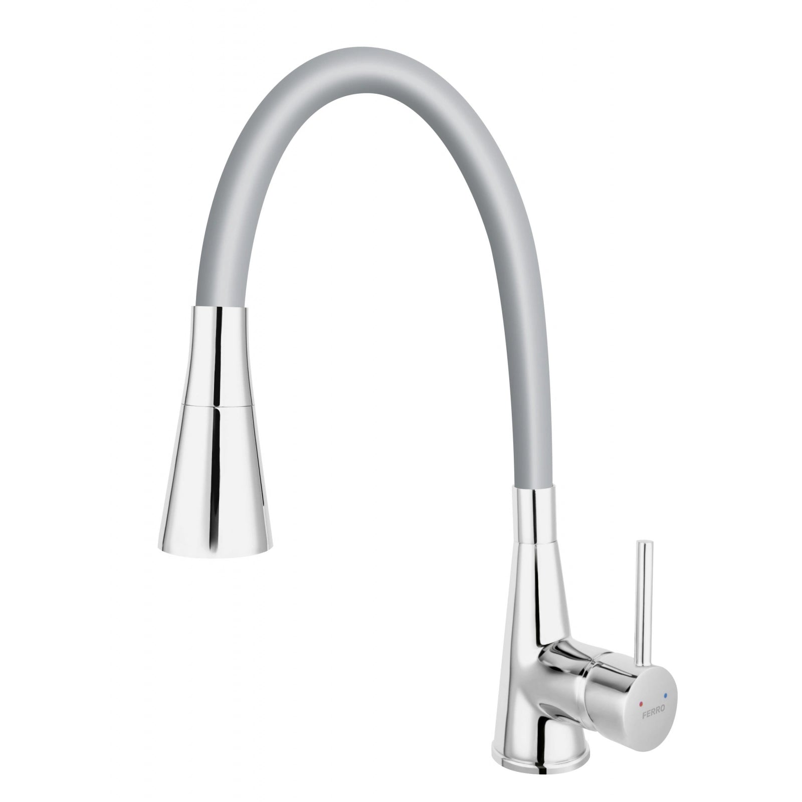 Bateria stativa de bucatarie Ferro Zumba II este confectionata din alama sanitara, cu finisaj cromat. Manerul este realizat din aliaj de zinc. Cartusul ceramic are diametrul de 35 mm.