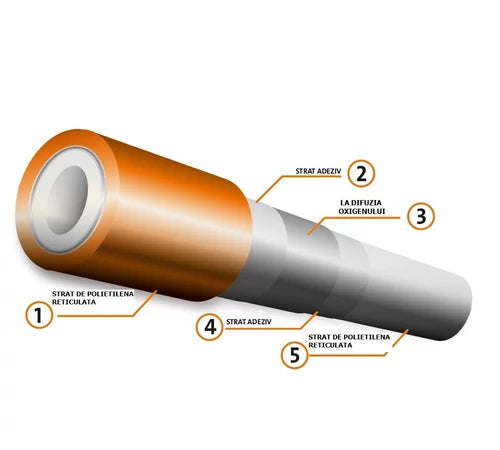 - bariera de EVOH pentru prevenirea difuziei de oxigen, plasata central in mijlocul structurii conductei